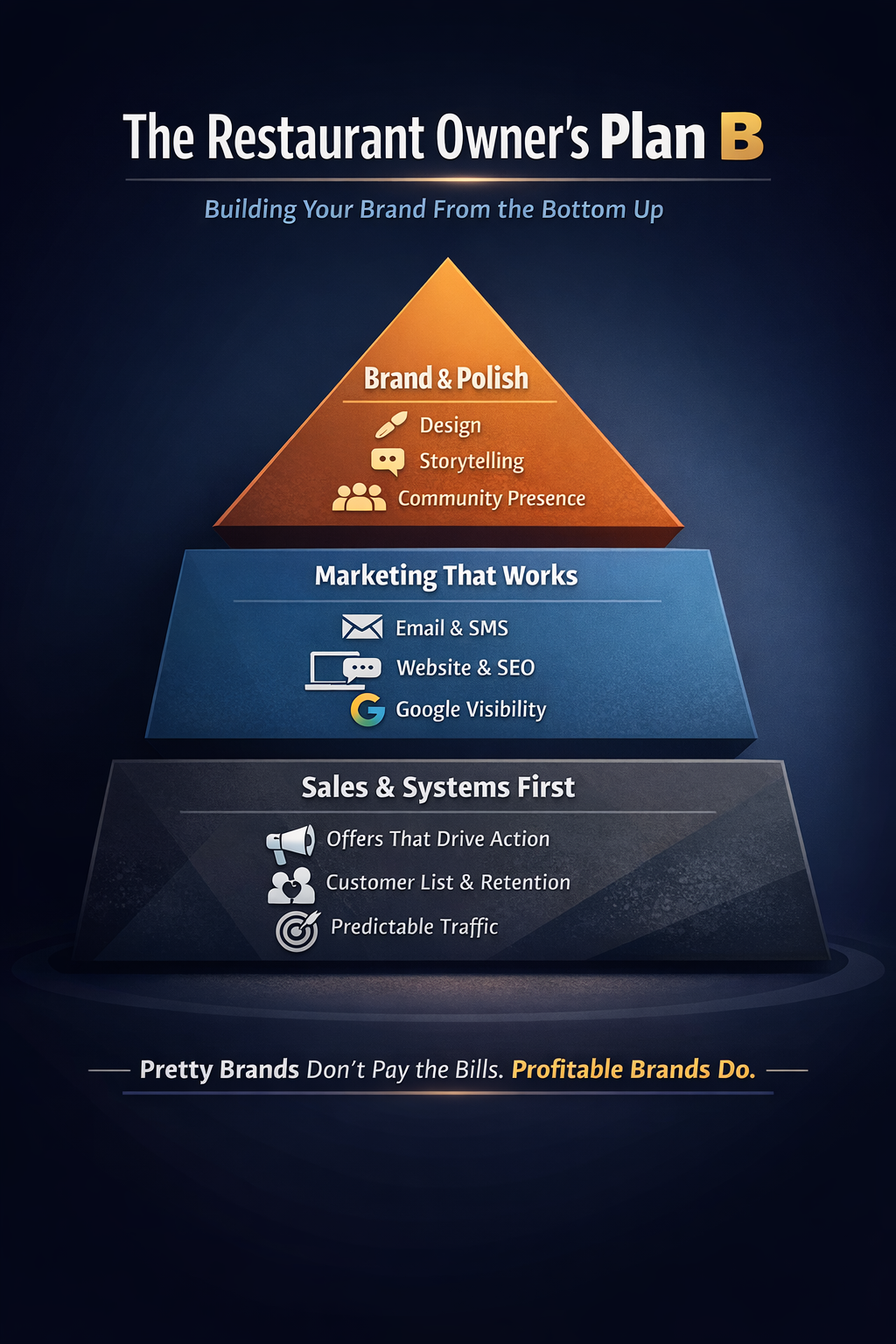 Instead of building from the top down, Plan B is a bottom-up approach to restaurant marketing — one that prioritizes sales, retention, and systems before polish.
